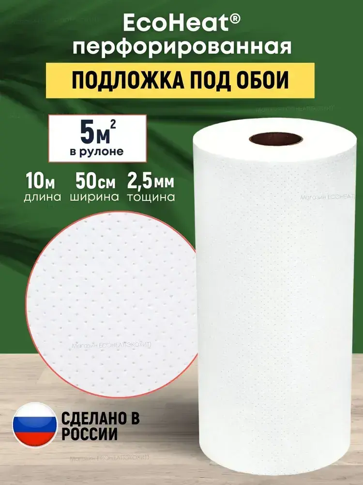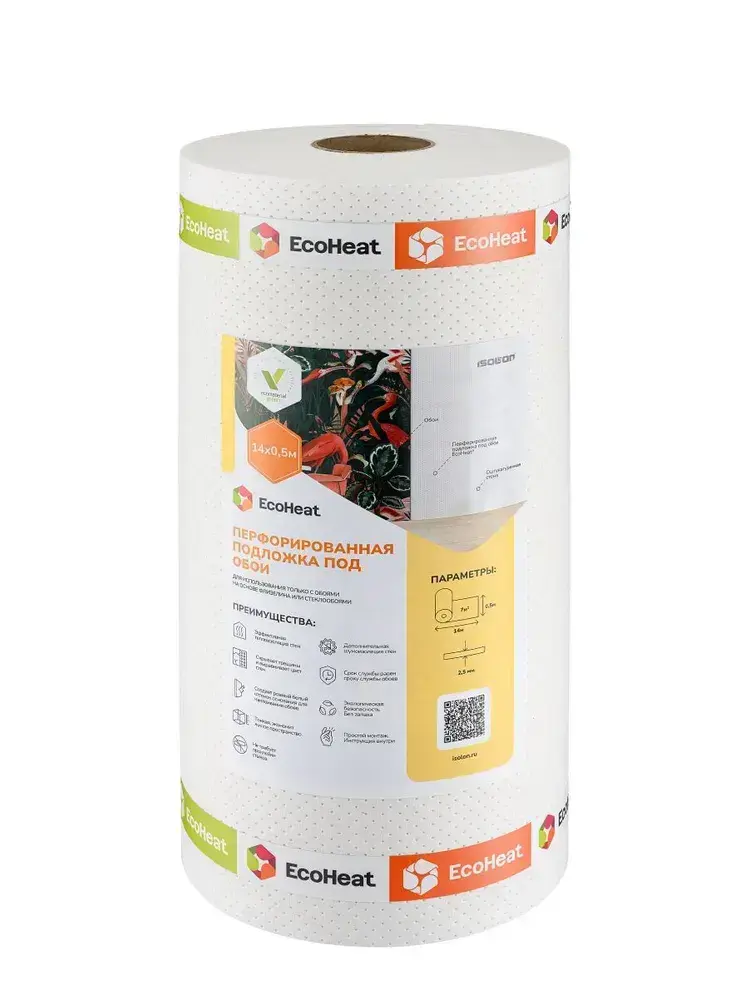 Подложка под обои перфорированная ISOLON EcoHeat, теплоизоляция под обои, 5 кв.м. (утепление стен, звукоизоляция)