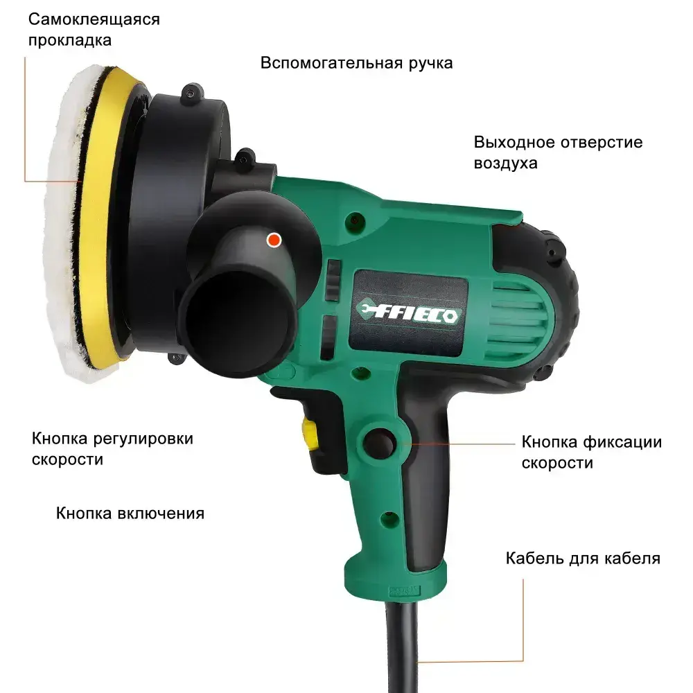 Полировальная машинка для автомобиля,шлифмашина полировальная сетевая,регулируемая скорость, 580 Вт, 2800 ОБ/мин, зеленый