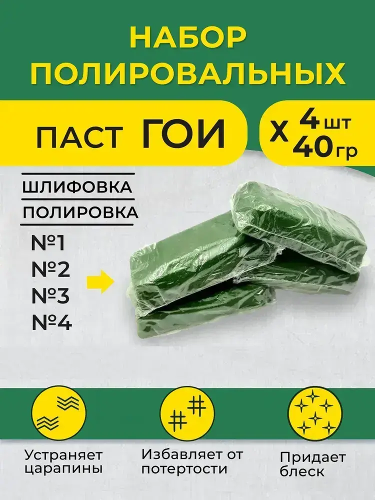 Полировальная паста ГОИ №1, 2, 3, 4 (набор 4 шт*40гр), паста гои для стекла/металла/пластика, гоя