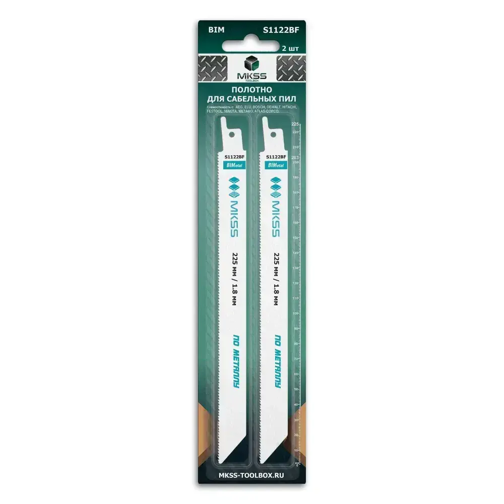 Полотна по металлу для сабельной пилы 225 мм с шагом 1.8 мм, S1122BF, MKSS