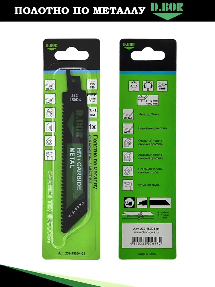 Полотно карбидное по металлу и закаленной стали, твердосплавные зубья, D.BOR HM CARBIDE METAL, 115/150*3 мм, для сабельной пилы,