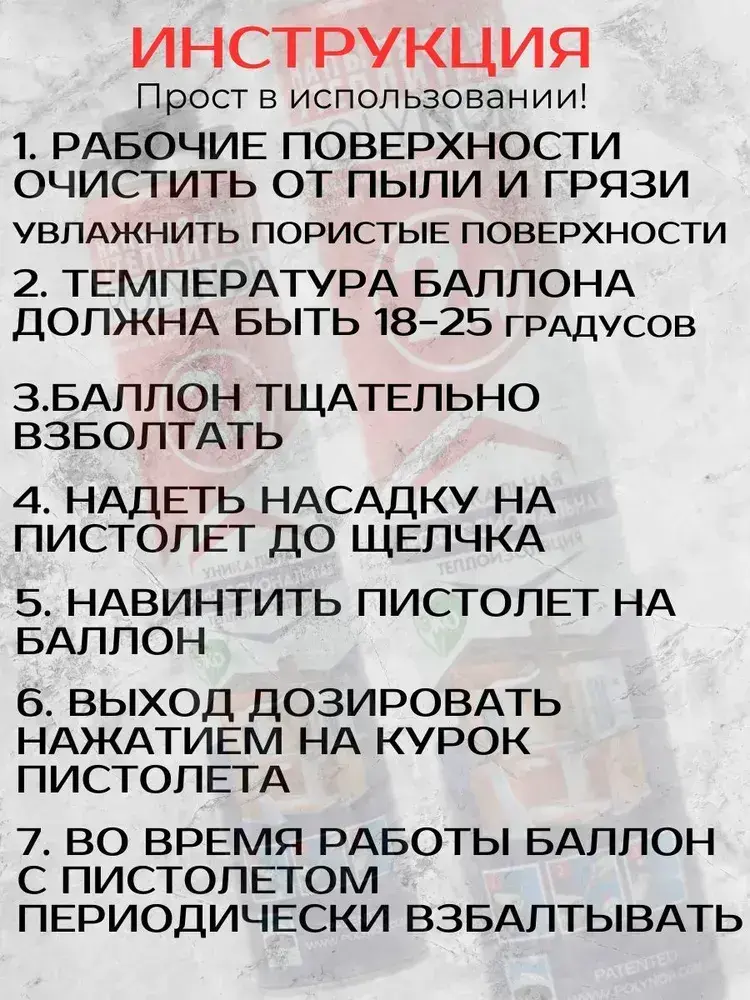 Polynor комплект 11 баллонов напыляемый утеплитель+ очиститель, пистолет, перчатки, насадка угл., респиратор, насадки