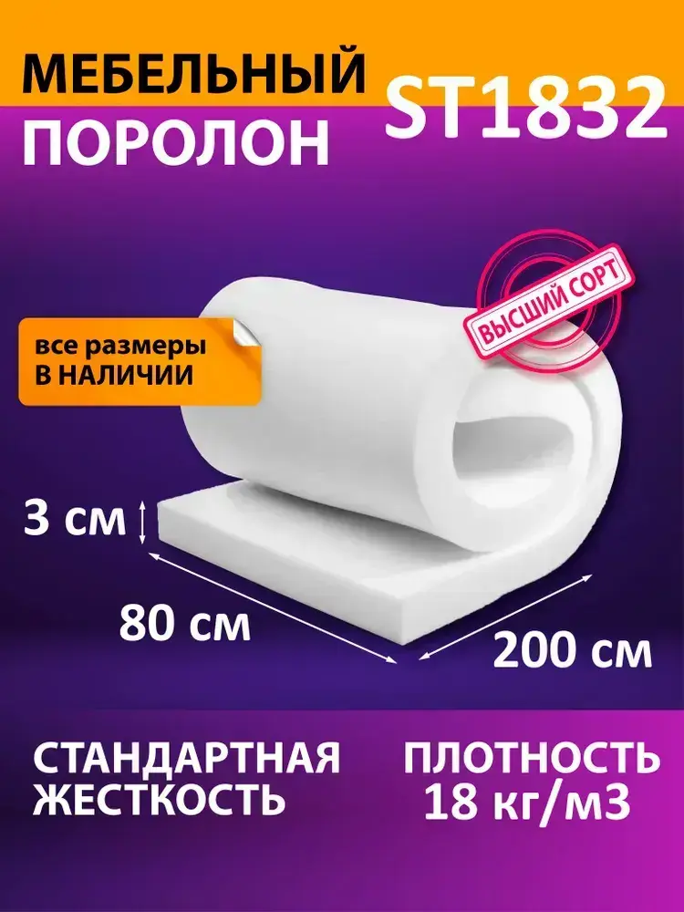 Поролон мебельный листовой 800x2000x30 мм