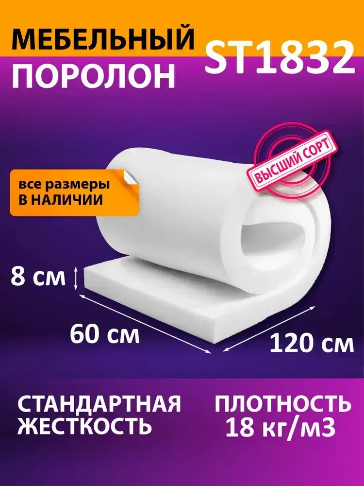 Поролон мебельный листовой ST 1832 600x1200x80 мм поролон плотность 18 кг/м3
