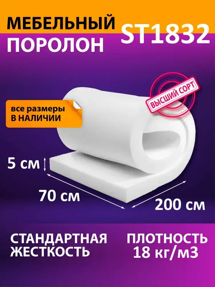 Поролон мебельный листовой ST 1832 700x2000x50 мм поролон плотность 18 кг/м3