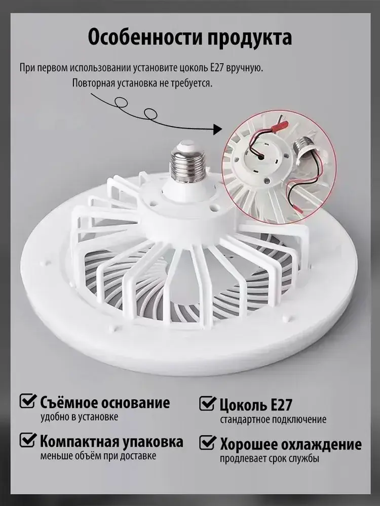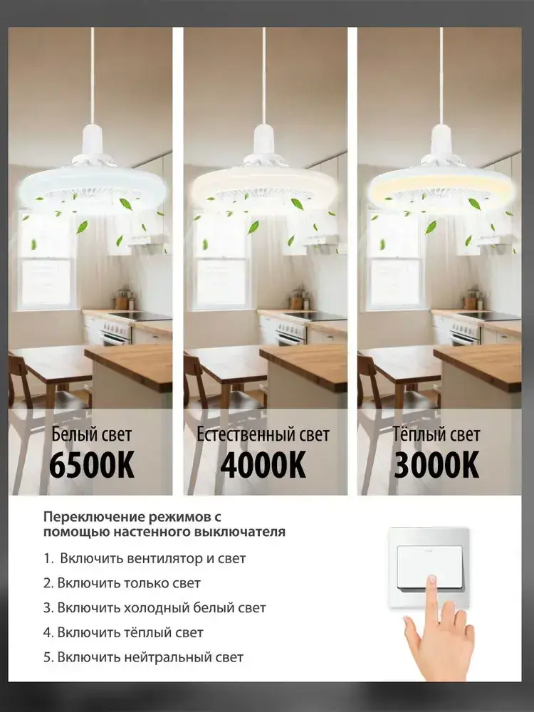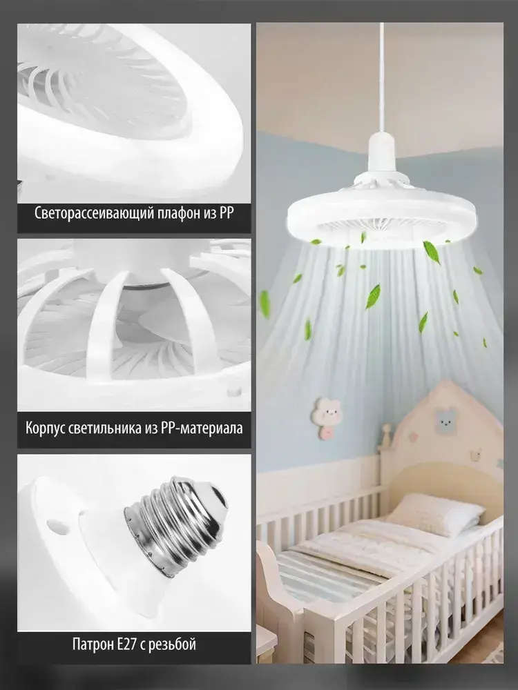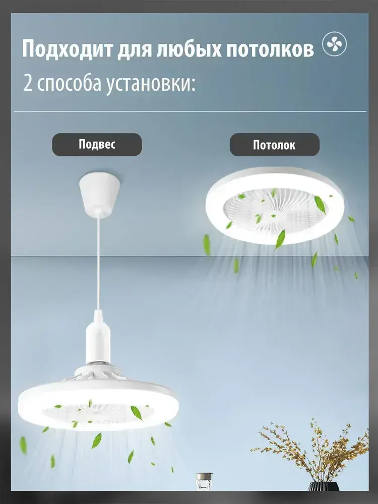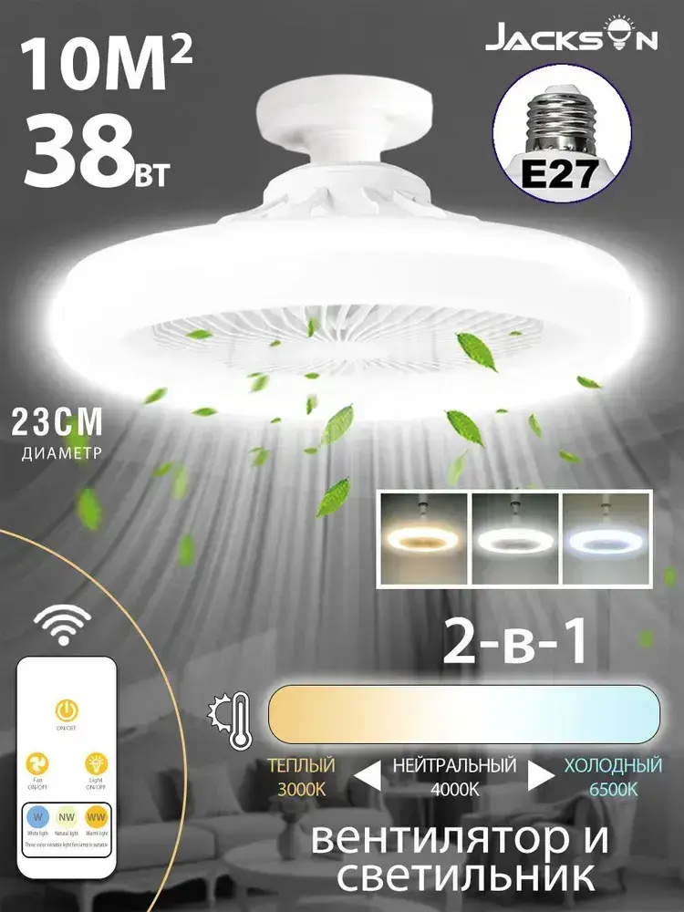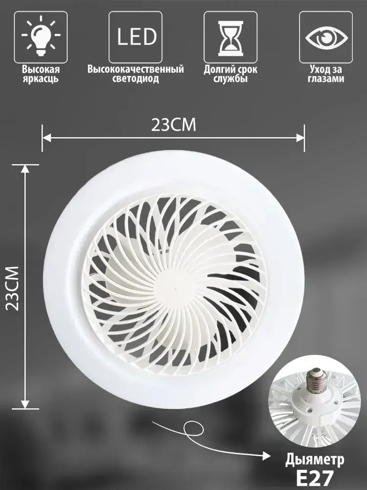 Потолочный вентилятор 38W Черный E27 диммируемый