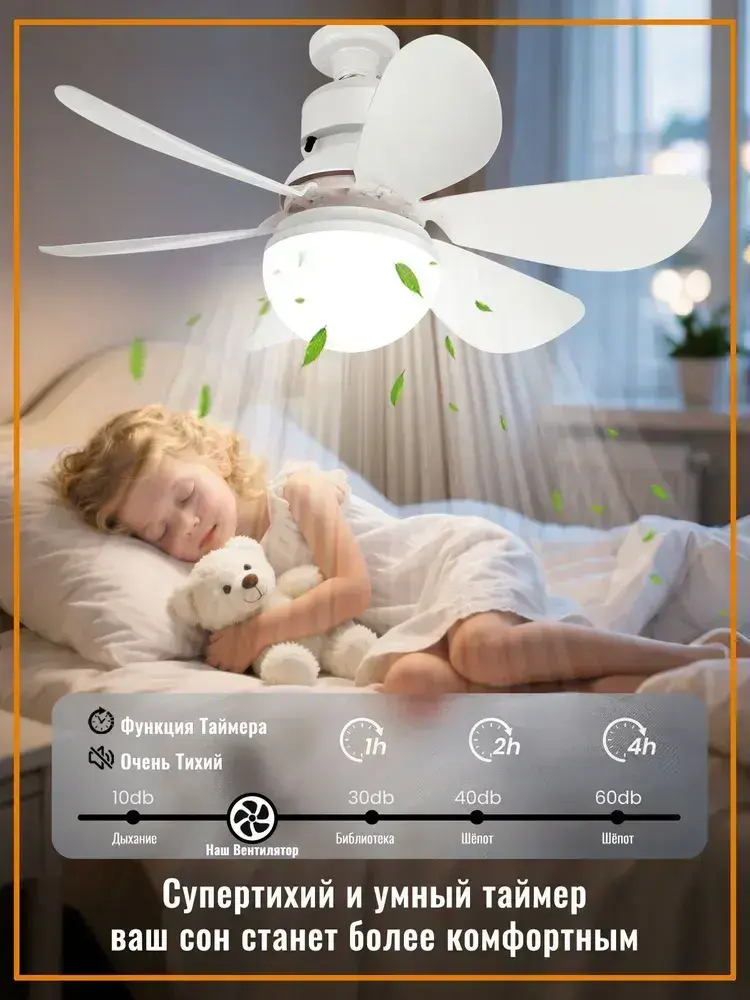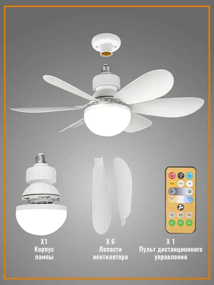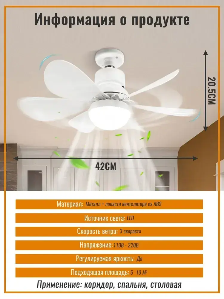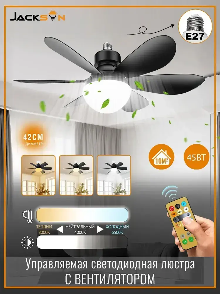 Потолочный вентилятор 45W Черный E27 диммируемый
