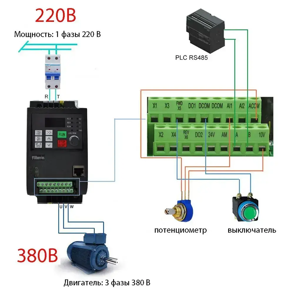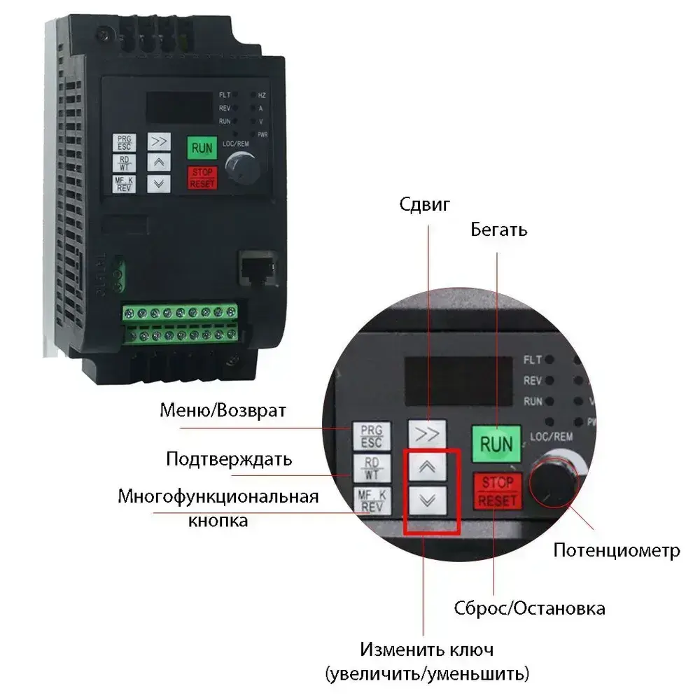 Преобразователь частоты 220В-380В 2.2кВт 5А V/F управляет приводом двигателя.