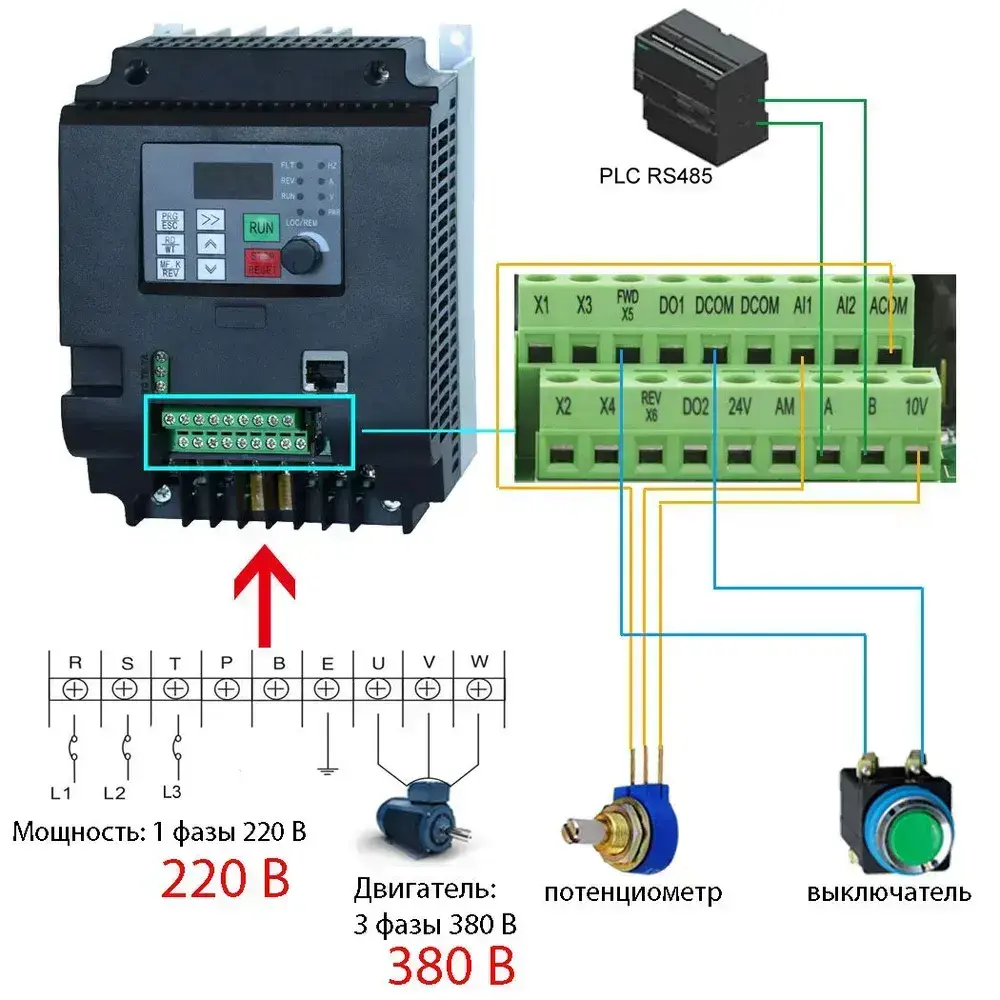 Преобразователь частоты 5.5кВт 220В-380B Трехфазный ввод - вывод Преобразователь частоты/модулятор скорости/VFD