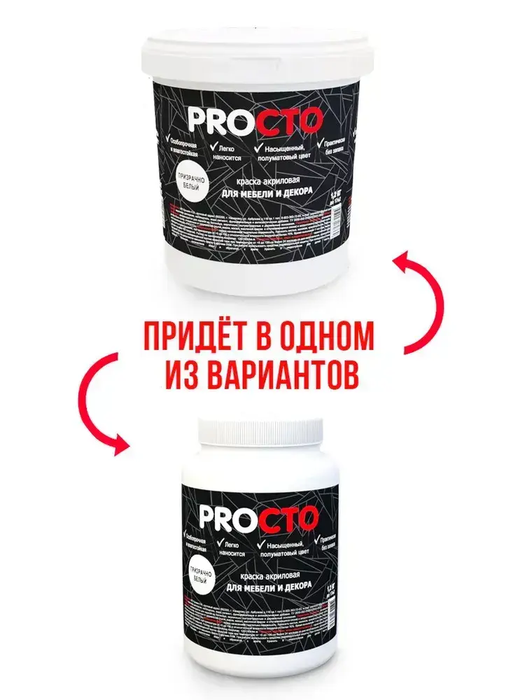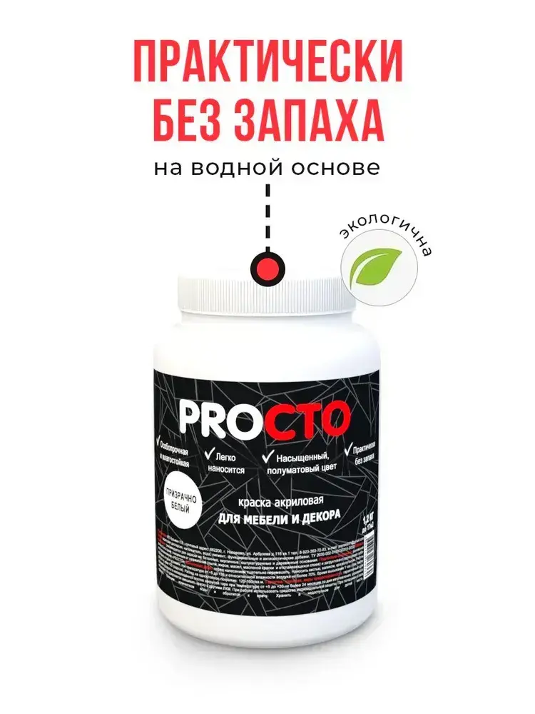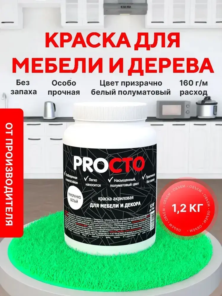 PROCTO Краска для мебели и дерева без запаха призрачно белая 1.2кг