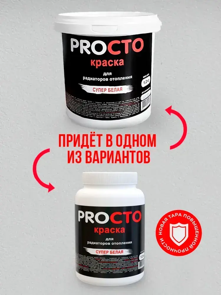 PROCTO Краска для радиаторов отопления, батарей и труб белая матовая эмаль без запаха быстро сохнущая акриловая 1.2 кг