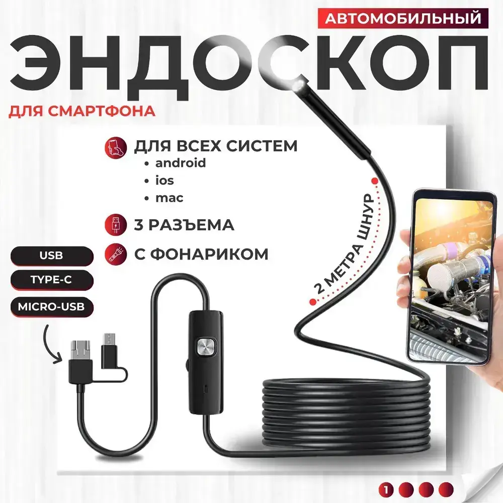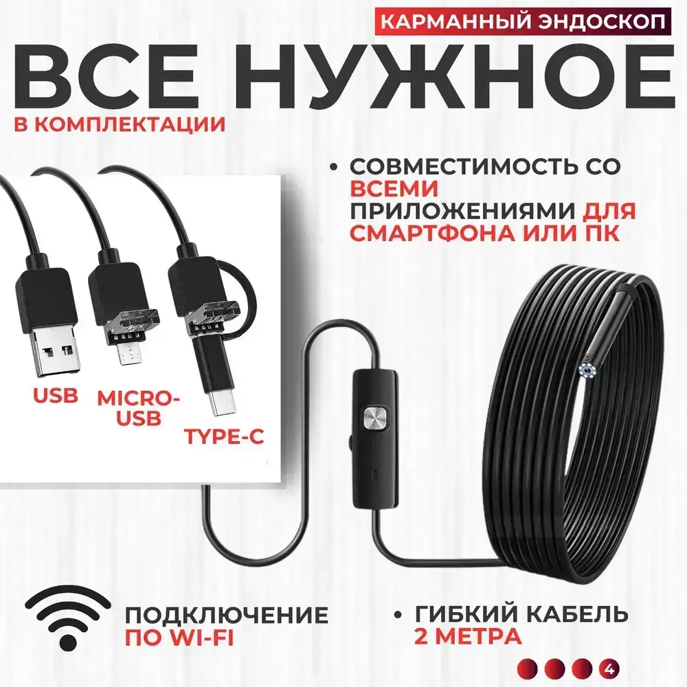 Профессиональный гибкий эндоскоп для смартфона с переходником Type c