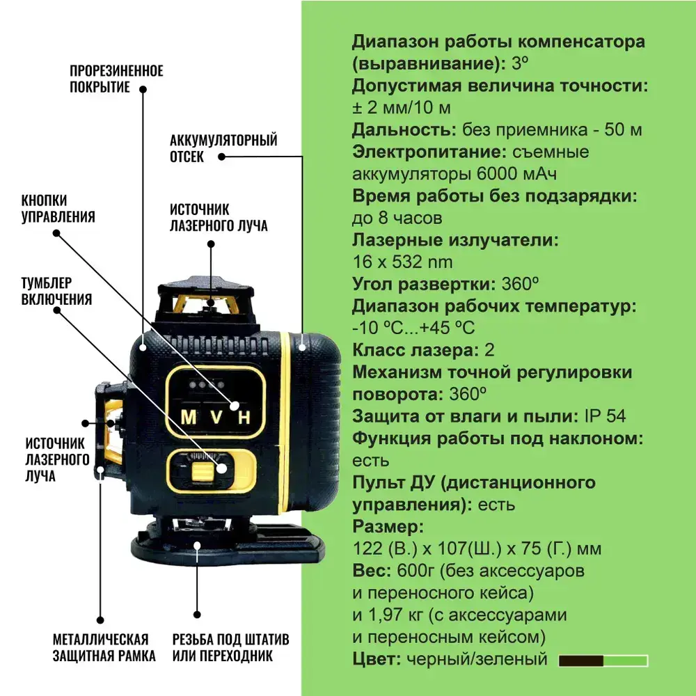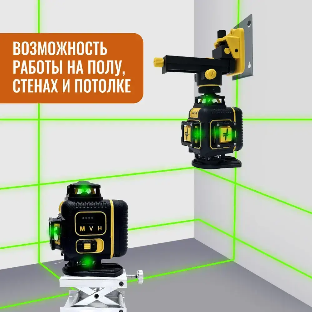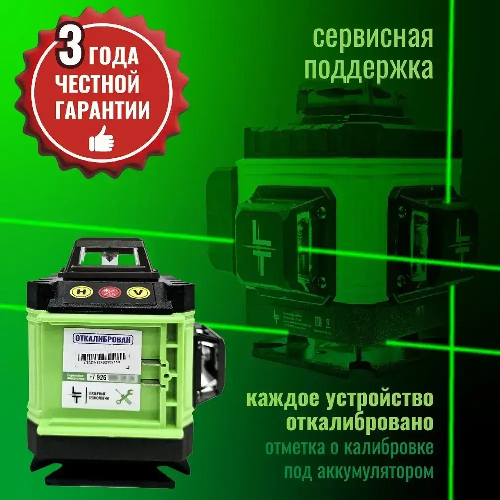 Профессиональный Лазерный уровень (нивелир) LT серии F 16 линий 4D в резиновом корпусе с металлическими бамперами на окошках, С ЯПОНСКИМИ СВЕТОДИОДАМИ SHARP + Тренога 1 метр.