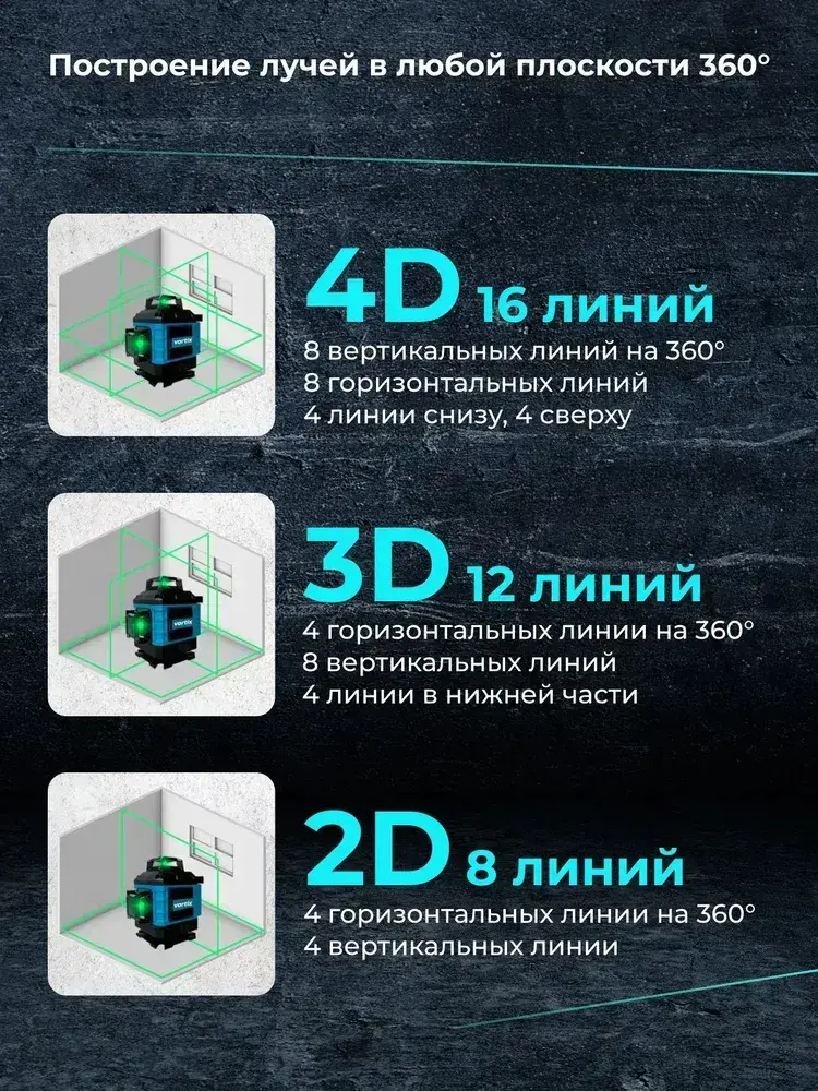 Профессиональный лазерный уровень самовыравнивающийся строительный 360 4D Нивелир Уровень лазерный, 16 лучей с пультом управления и штативом, Зеленый луч 360 градусов