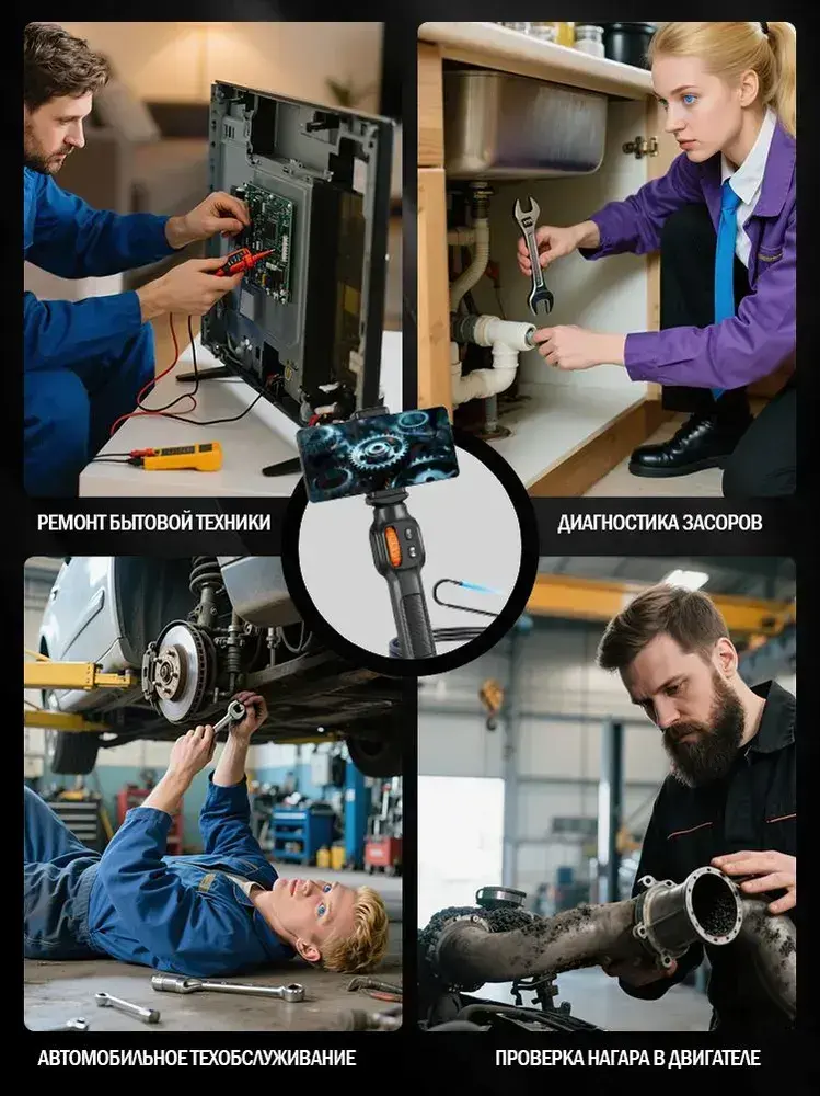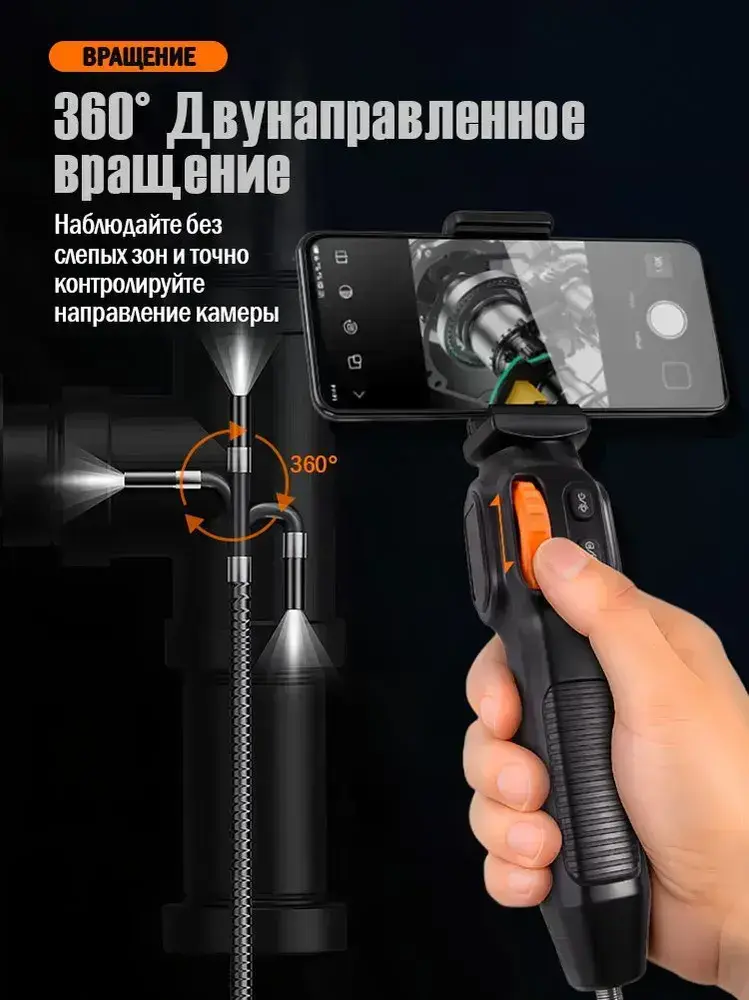 Промышленный эндоскоп с 360 вращающейся видеокамерой, 6 мм, 2 МП HD, водонепроницаемость IP67, совместим с iOS и Android.