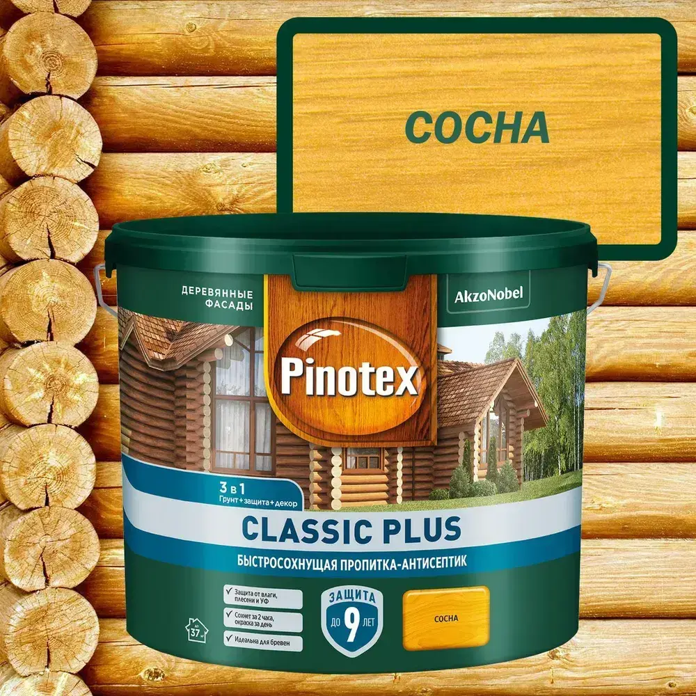 Пропитка декоративная для защиты древесины Pinotex Classic Plus 3 в 1 сосна 2,5 л.