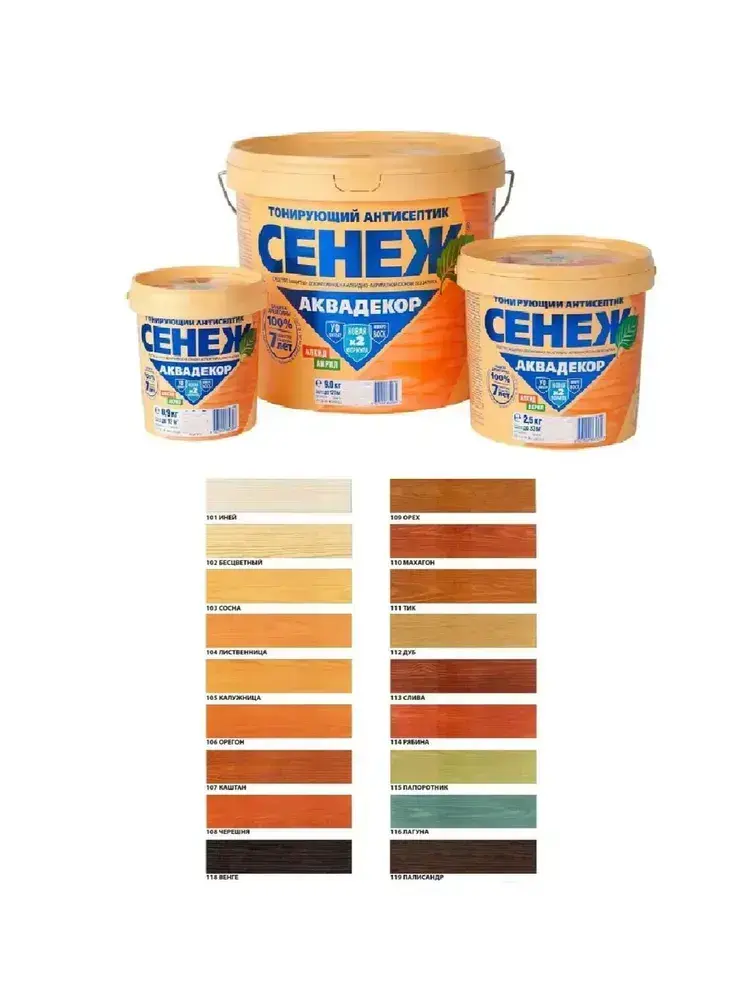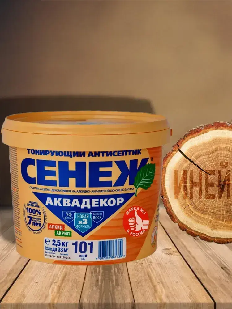 Пропитка для дерева тонирующий антисептик Сенеж Аквадекор 101 Иней 2,5 кг