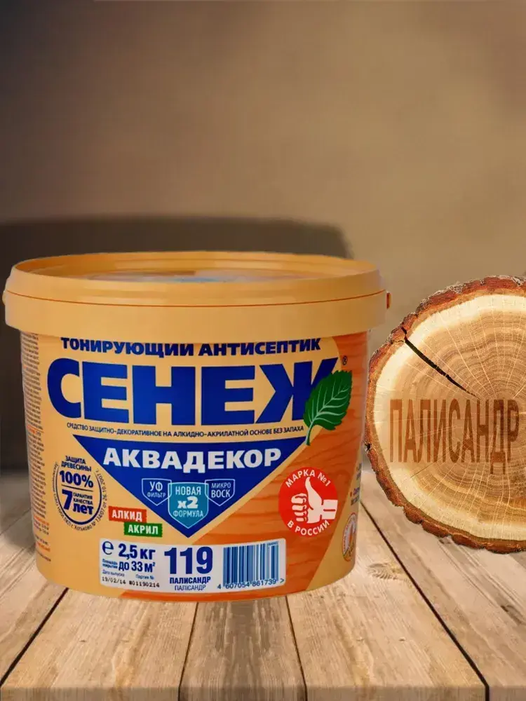 Пропитка для дерева тонирующий антисептик Сенеж Аквадекор 119 Палисандр 2,5 кг