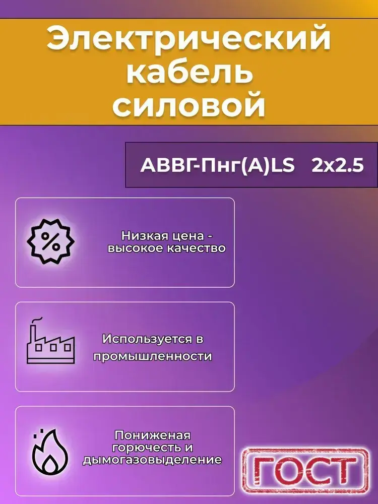 Провод электрический алюминиевый ГОСТ АВВГ-Пнг(А)-LS 2х2,5 - 10 м.