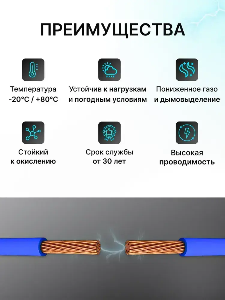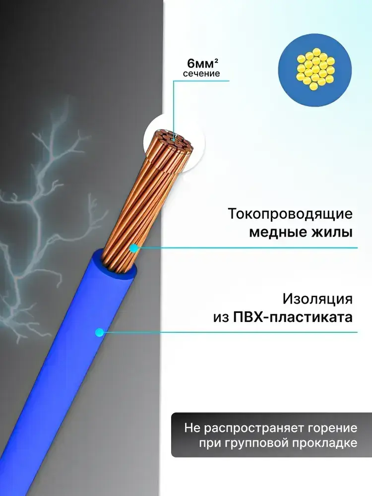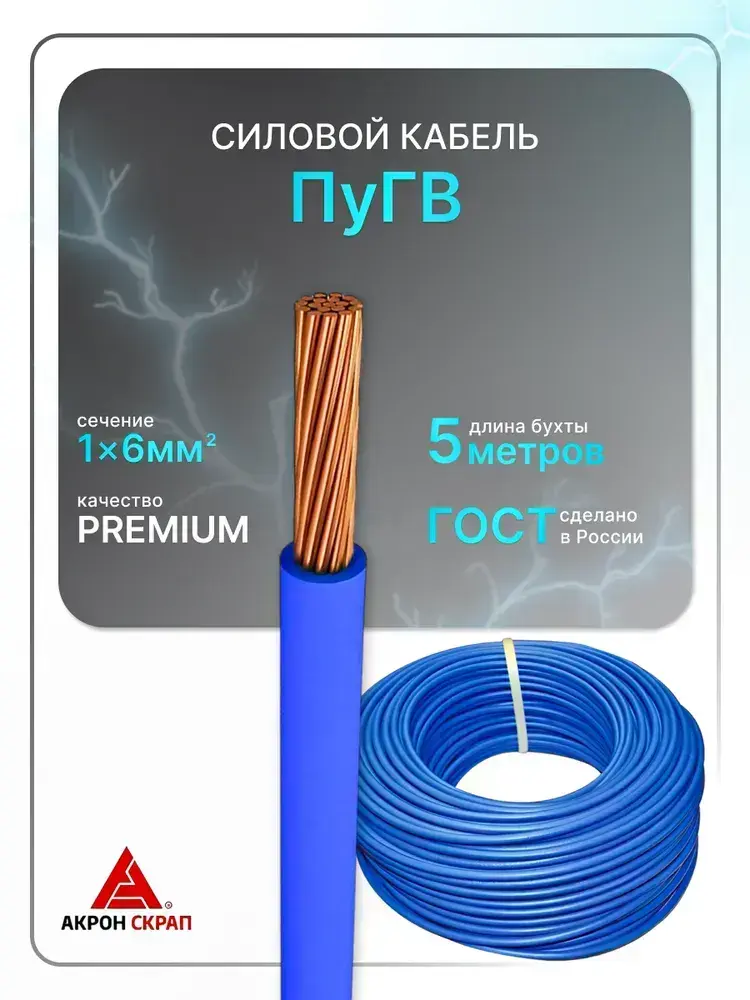 Провод электрический ПуГВ 1х6 синий ГОСТ круглый 5 м