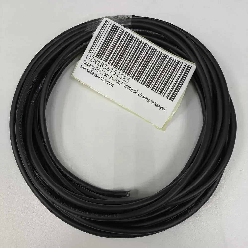Провод ПВС 2х0.75 ГОСТ ЧЕРНЫЙ 10 метров Калужский кабельный завод