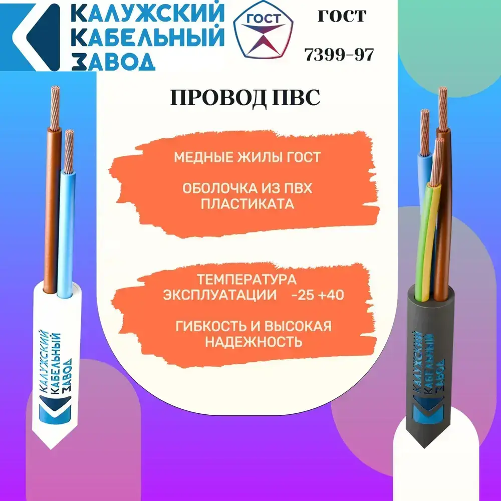Провод ПВС 3х1.5 ГОСТ 10 метров Калужский кабельный завод