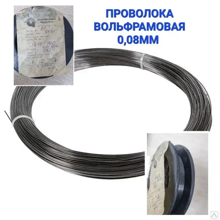 Проволока вольфрамовая 0.08мм ВА1А моток 5м вольфрам