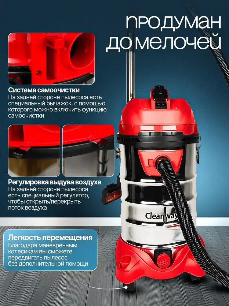 Пылесос стоительный Cleanway M-3000 с розеткой 3000Вт