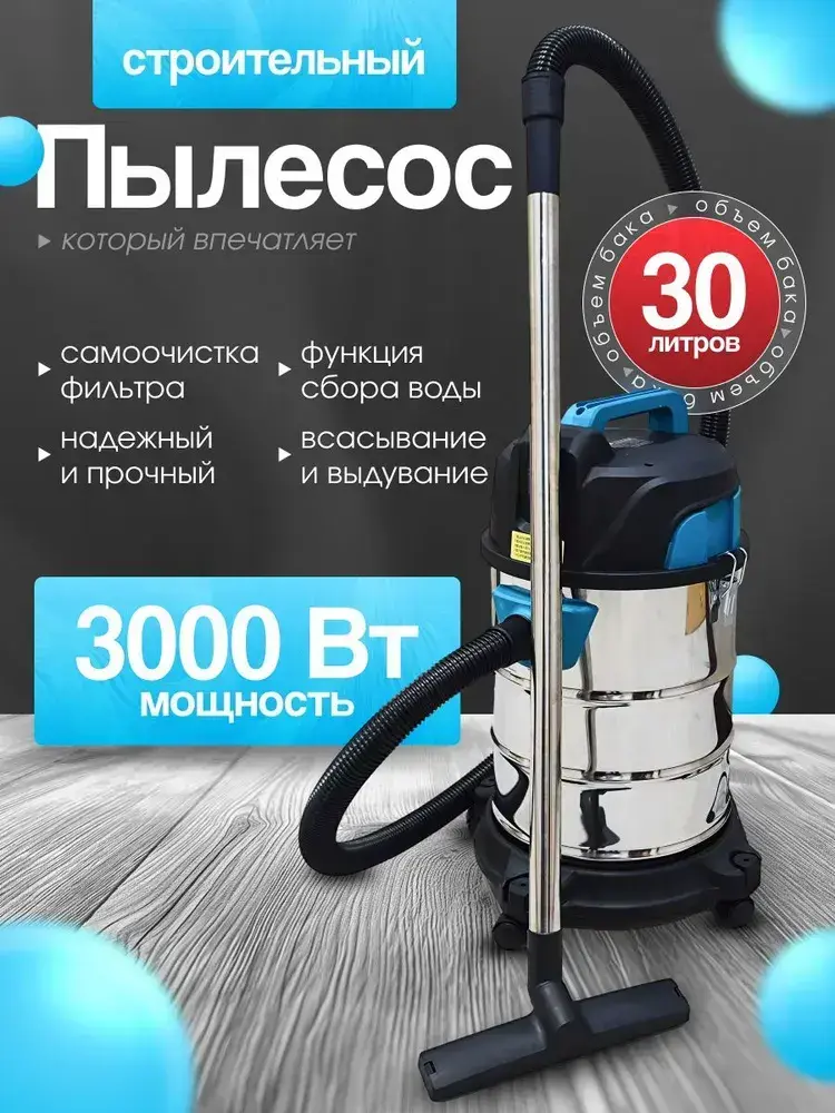 Пылесос строительный мощный 3000Вт Cleanway T-3000