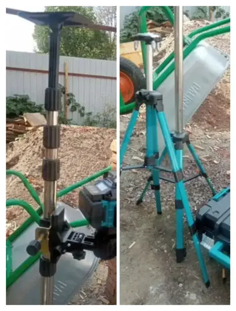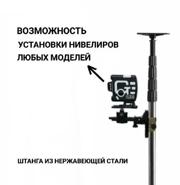 Распорная штанга-штатив для лазерного уровня 4 м с треногой + поворотная головка 360 / телескопическая/нержавеющая сталь