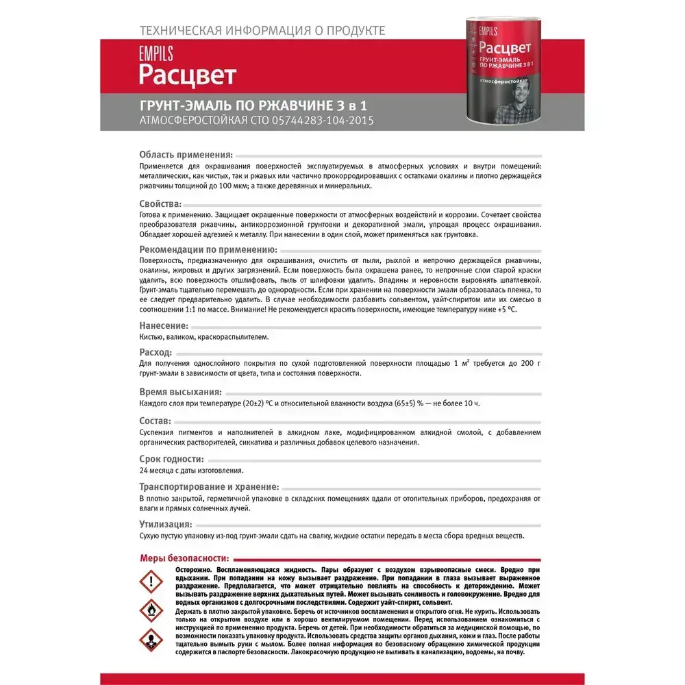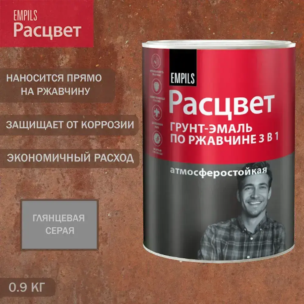 Расцвет грунт-эмаль по ржавчине серый 0,9 кг