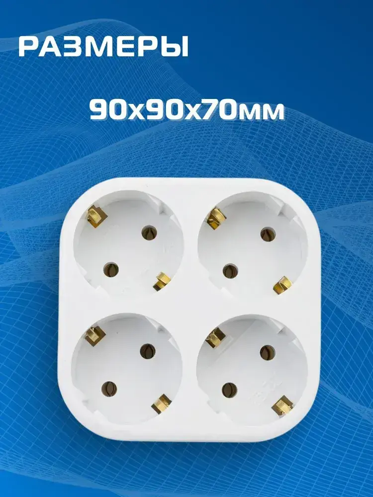 Разветвитель четверник сетевой с заземлением 16А, белый