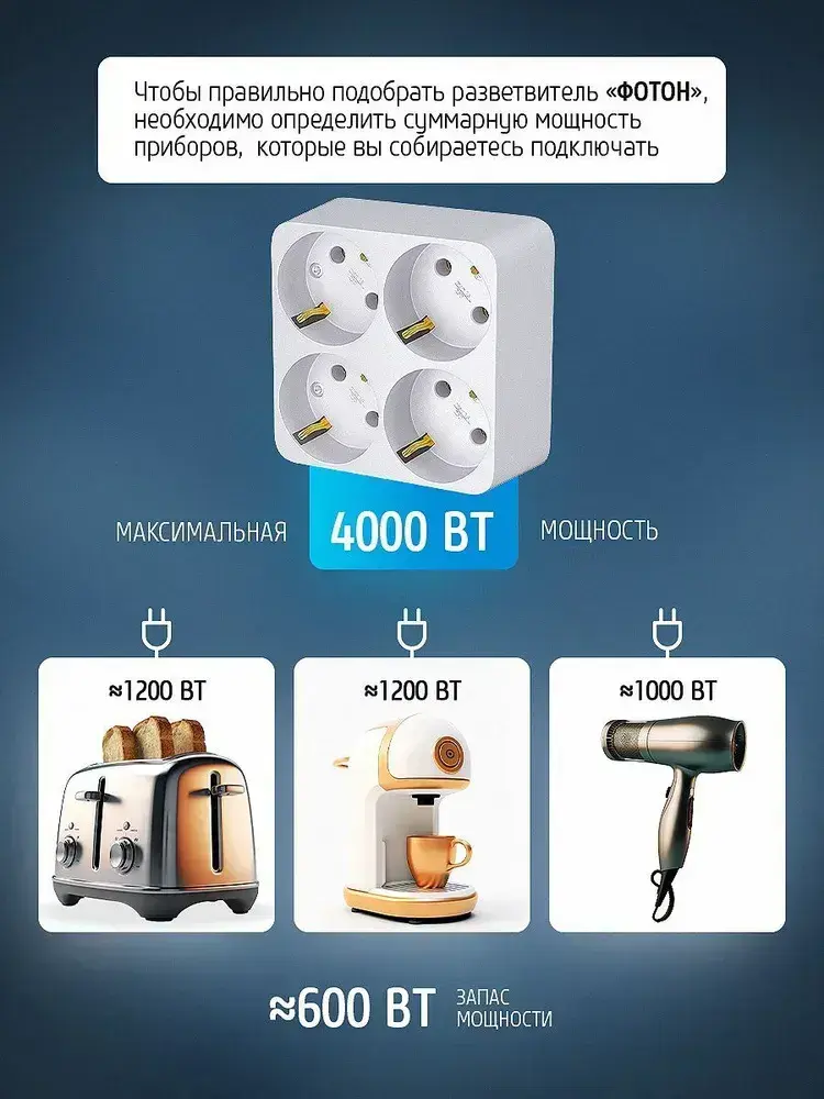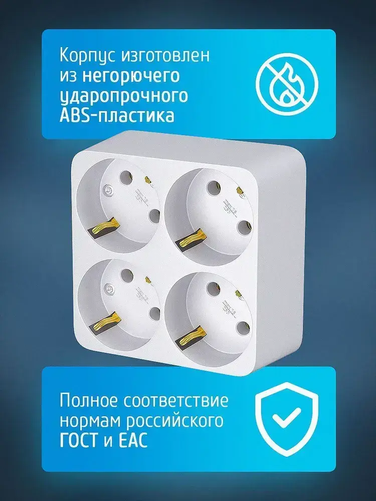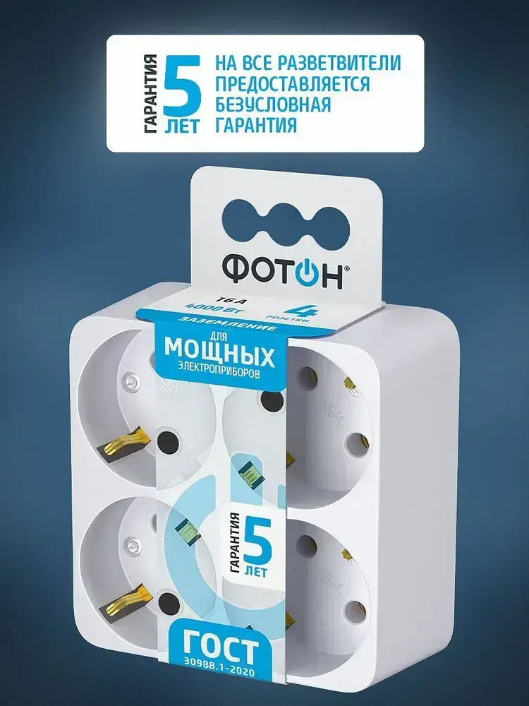 Разветвитель для розетки четверник ФОТОН 16А с заземлением