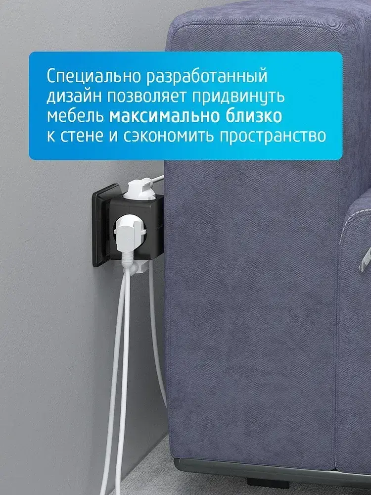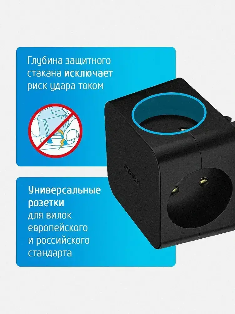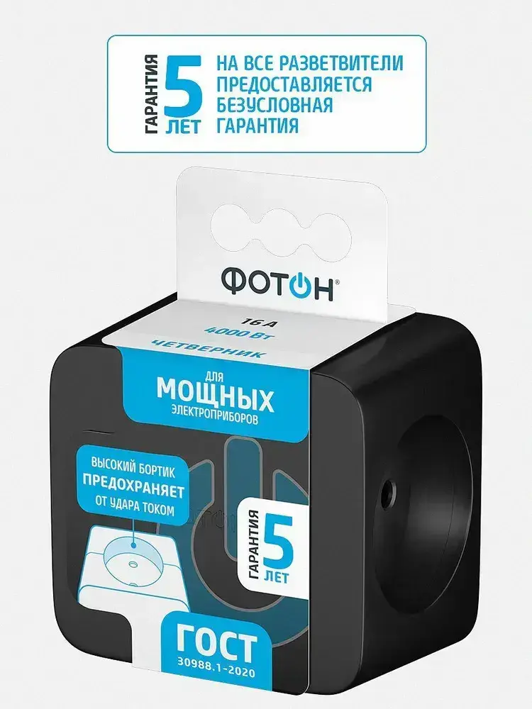 Разветвитель для розетки ФОТОН четверник куб 16А, черный
