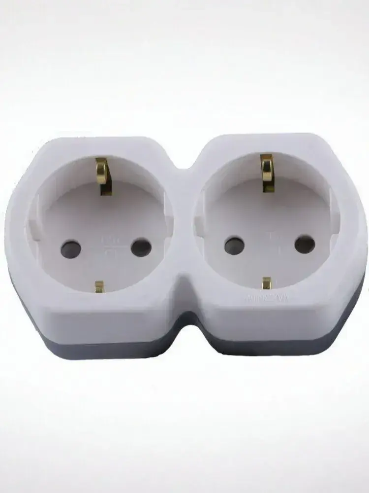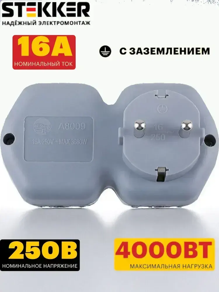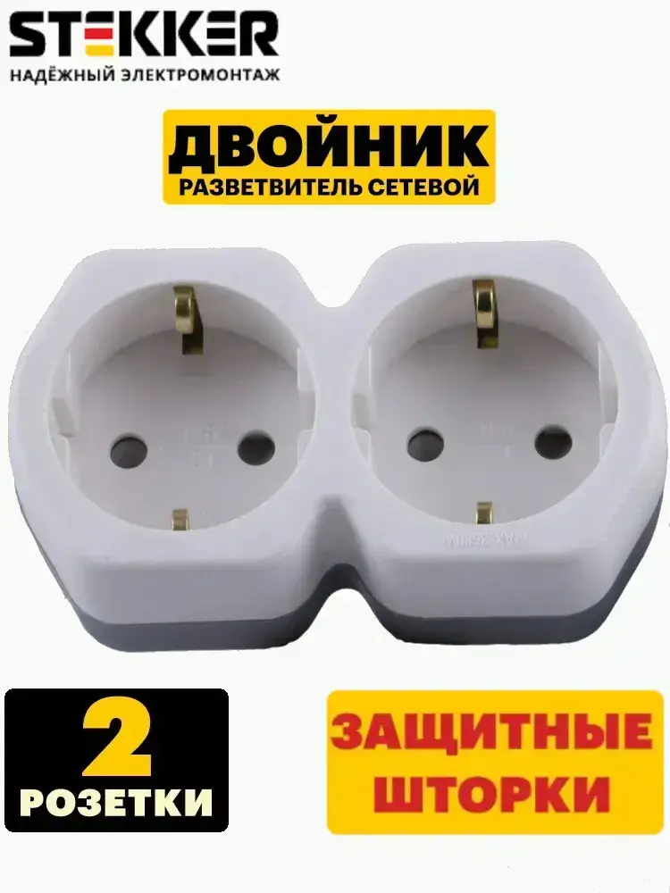 Разветвитель сетевой 2-местный с/з STEKKER ADP16-12-20, 250V,16A, ABS огнеустойчивый пластик, белый/серый, 32870