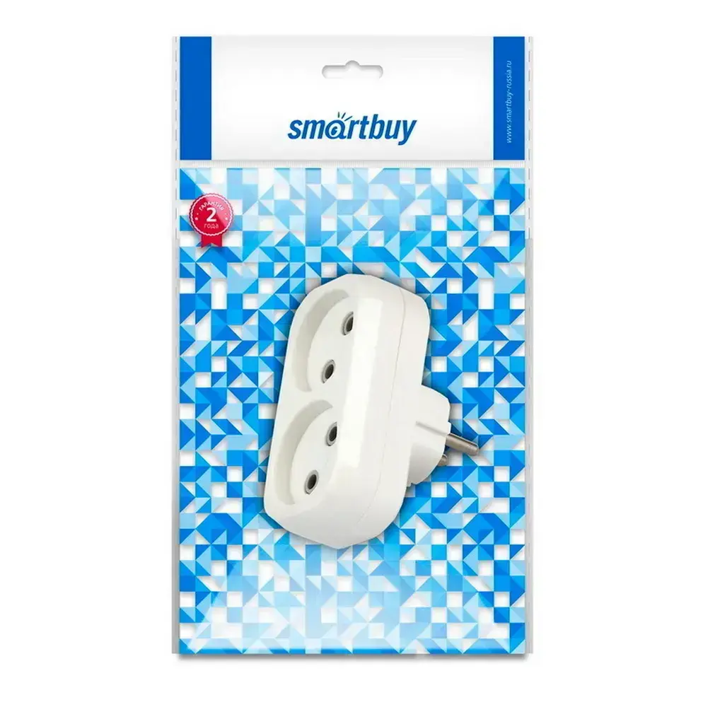 Разветвитель Smartbuy, 2 гнезда без заземления плоский 10А 250B (SBE-10-A02-2)