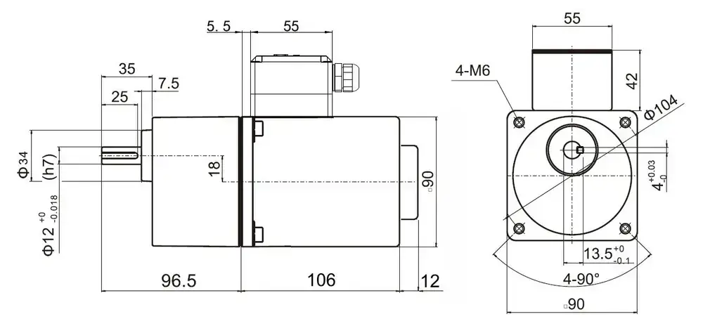 Регулируемый однофазный электродвигатель с редуктором 40 Вт 52 об/мин 220 В 90YT40WGV22H/90GF25H12-ORANGE