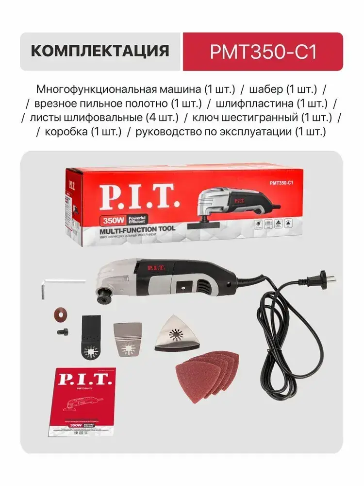 Реноватор многофункциональный P.I.T. PMT350-C1, 350Вт, угол колебаний 3,5,15000-22000 кол/мин, пильные пол-на