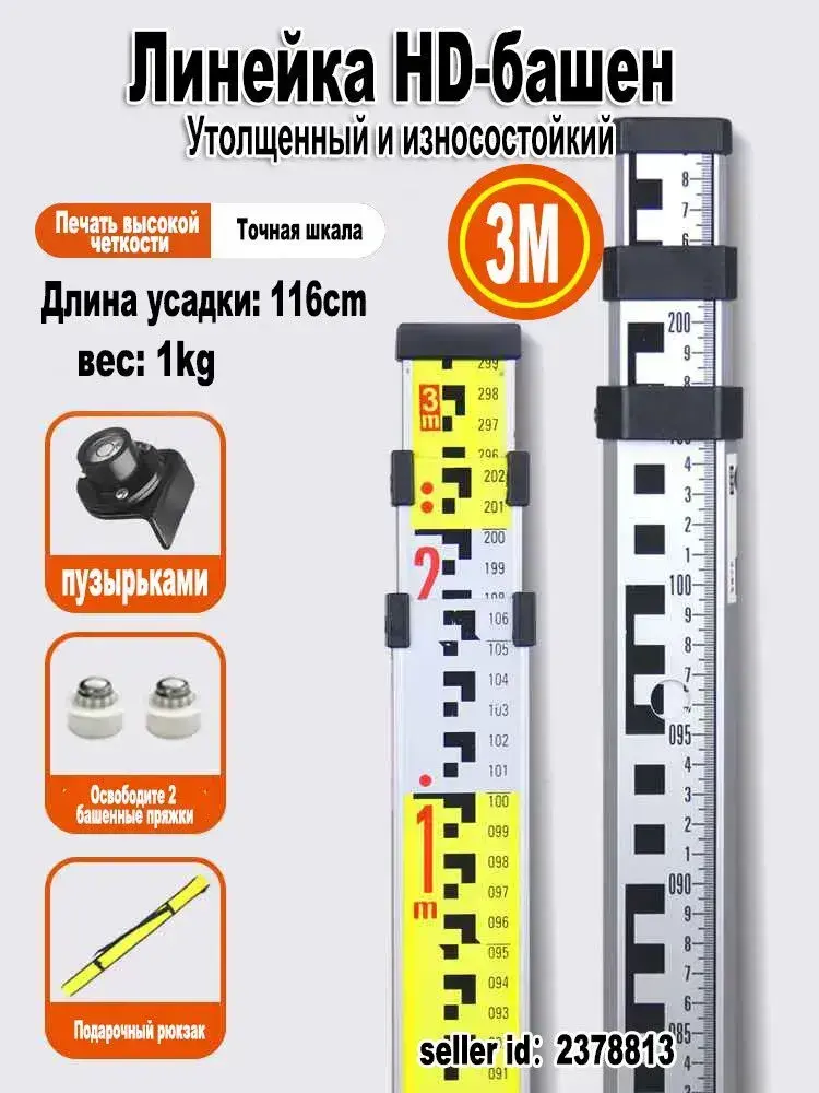 Рейка нивелирная телескопическая 3 метров, алюминий, чехол