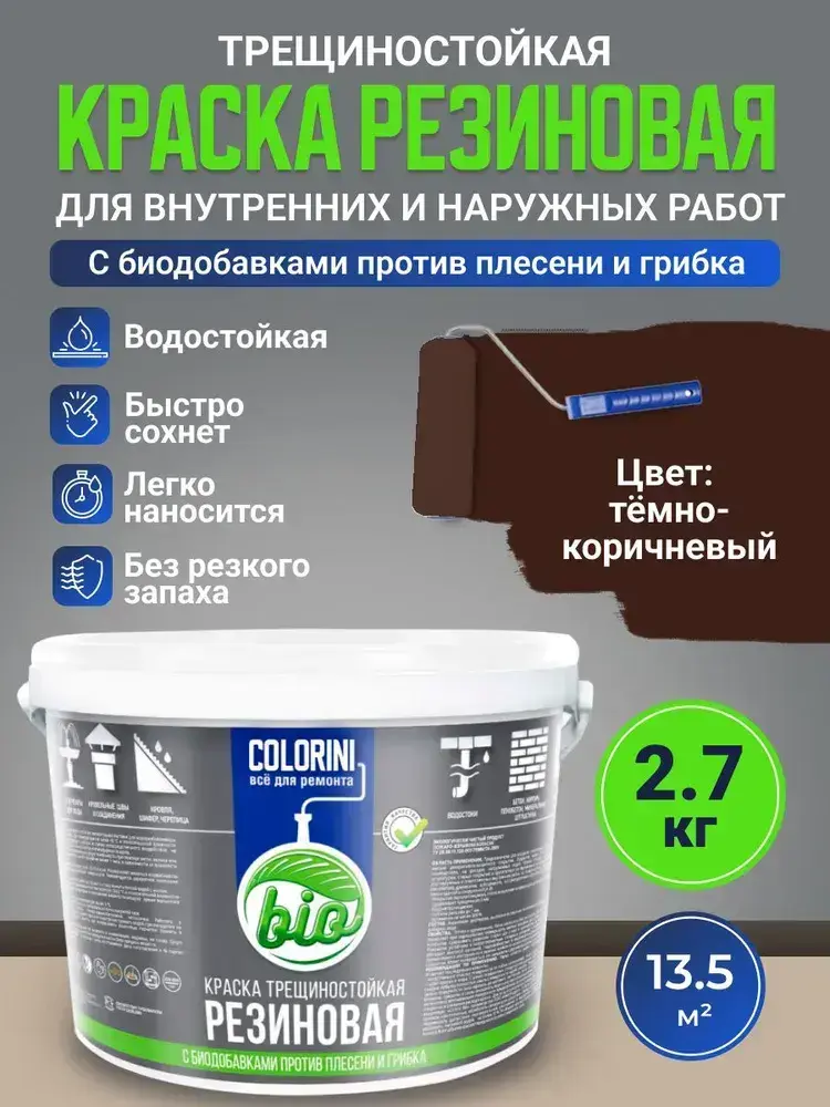Резиновая краска COLORINI Bio 2.7 кг Коричневая