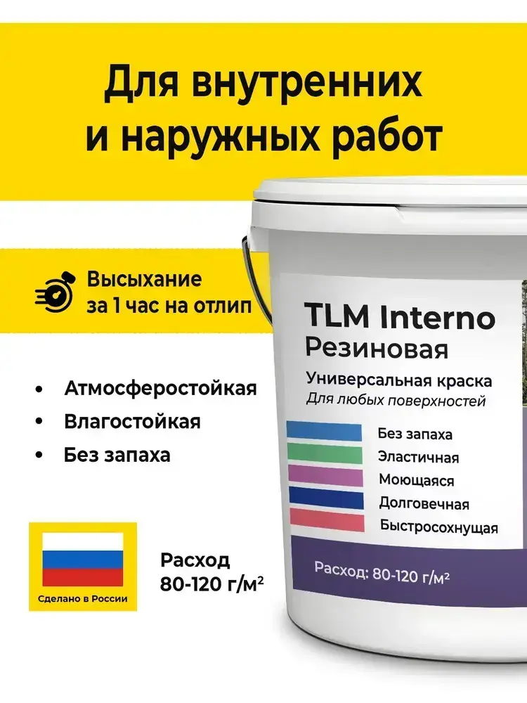 Резиновая краска для наружных работ и внутренних работ, для бетона, фасадов, стен, кровли, белая - 3,9 кг