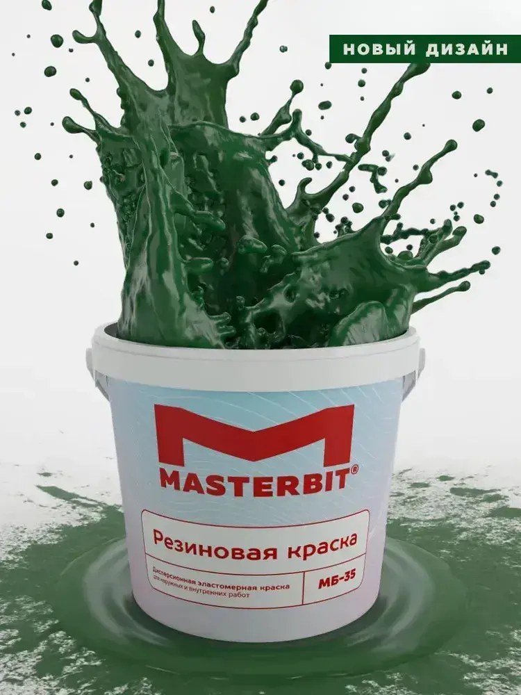 Резиновая краска МАСТЕРБИТ ЗЕЛЕНЫЙ МОХ 3 кг, без запаха растворителей, моющаяся, водостойкая, водоэмульсионная, быстросохнущая, полуматовая