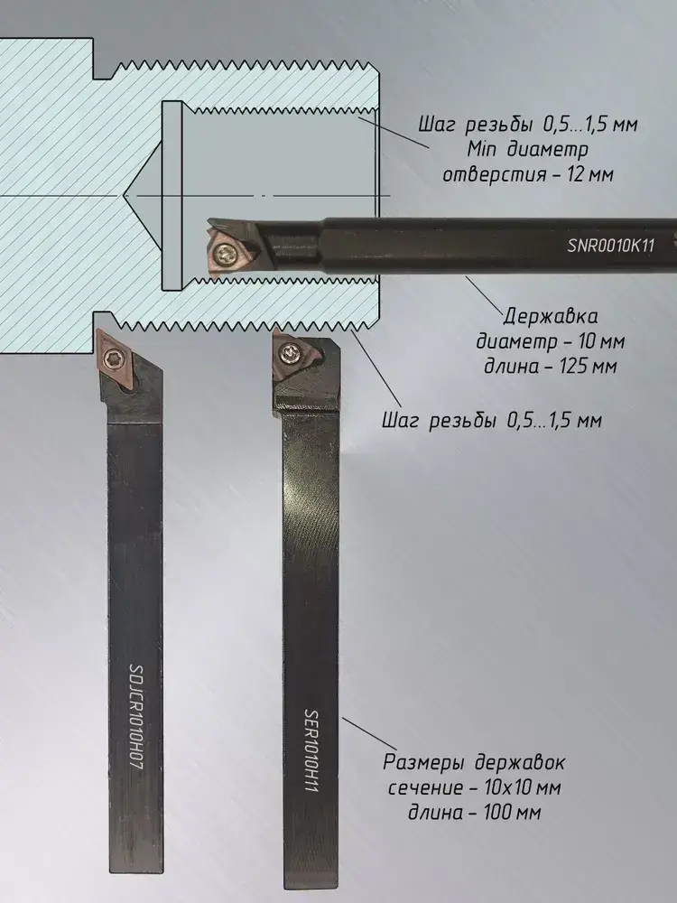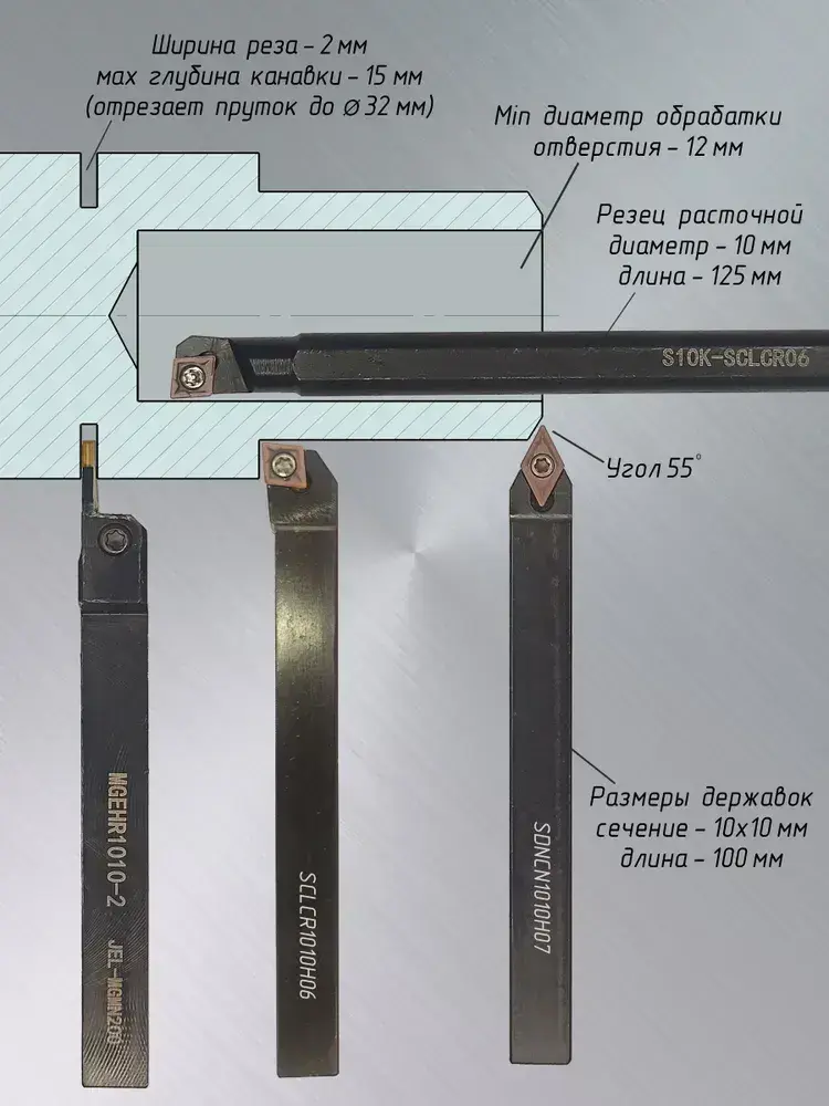 Резцы токарные 10х10 со сменными пластинами / Набор из 7 резцов по металлу