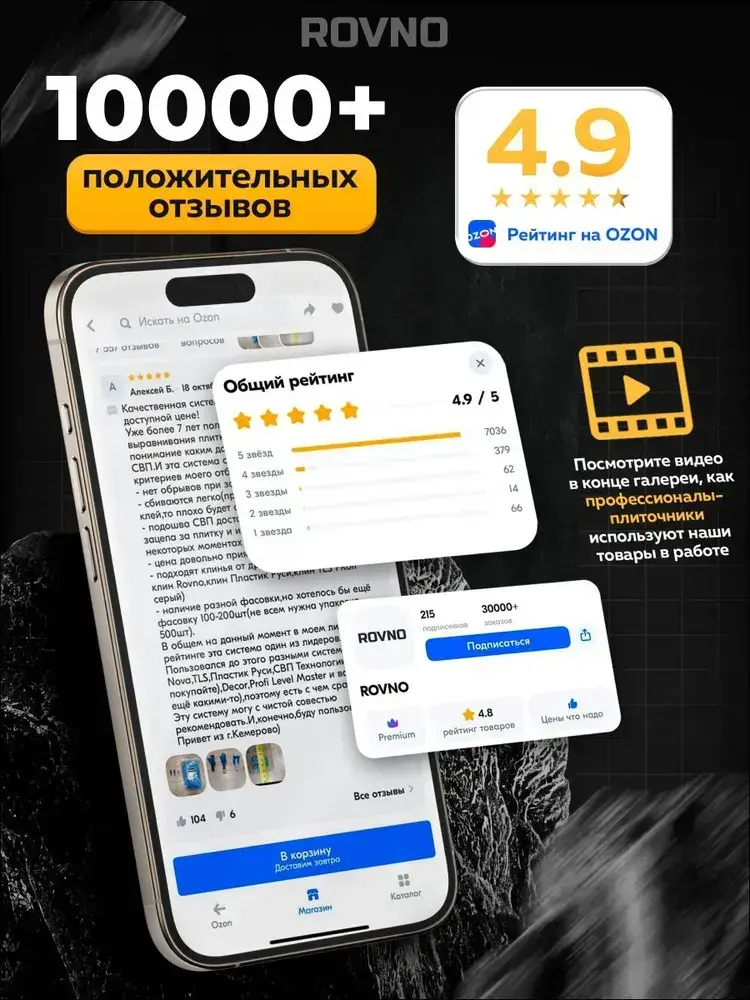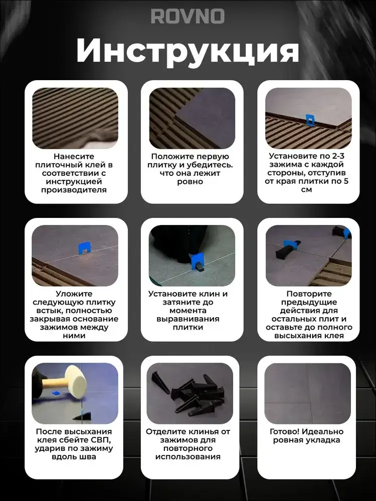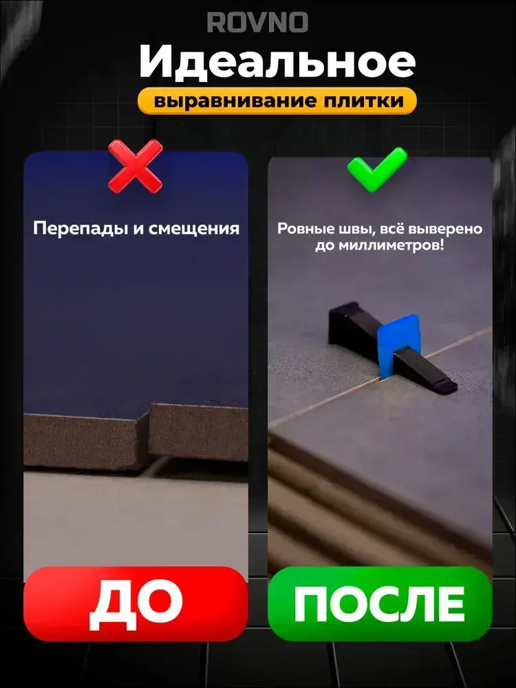 ROVNO Система выравнивания плитки, 1мм, 700 шт.