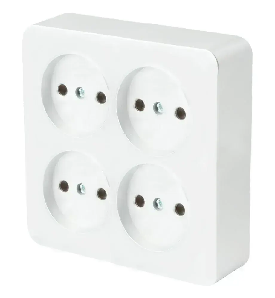 Розетка 4-местная без заземления открытой установки , квадрат, 250В, 10А, IP20, серия София, белый STEKKER 49309