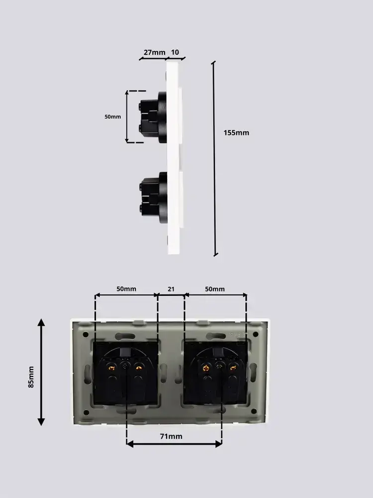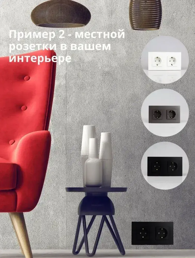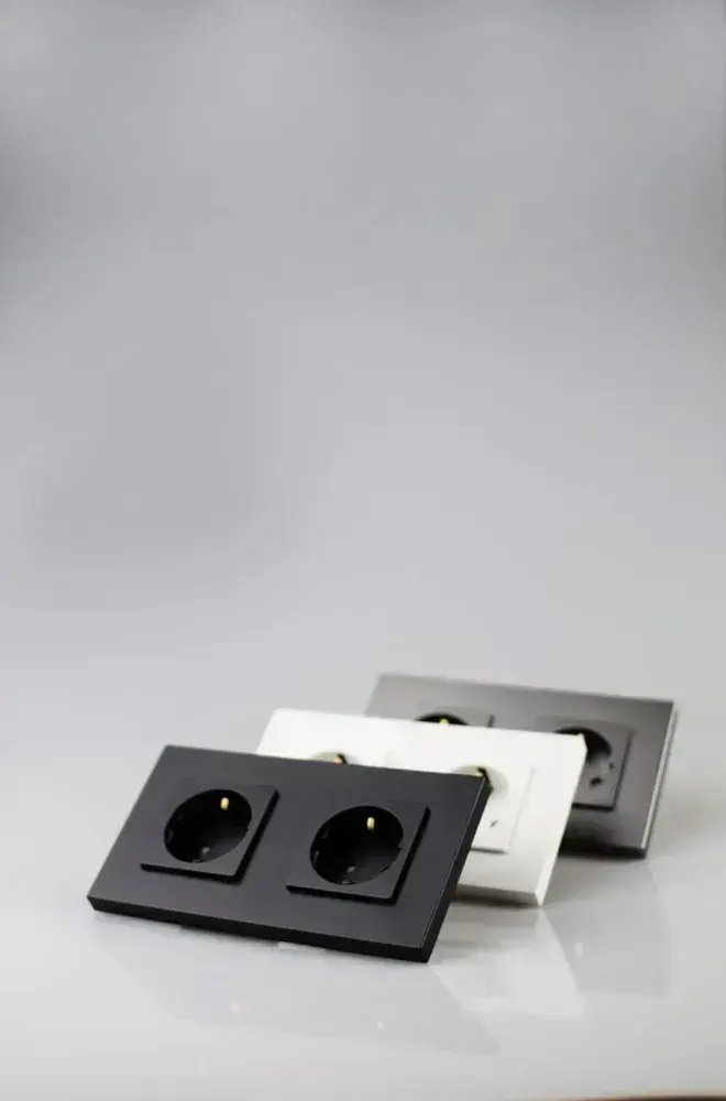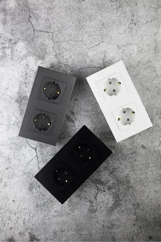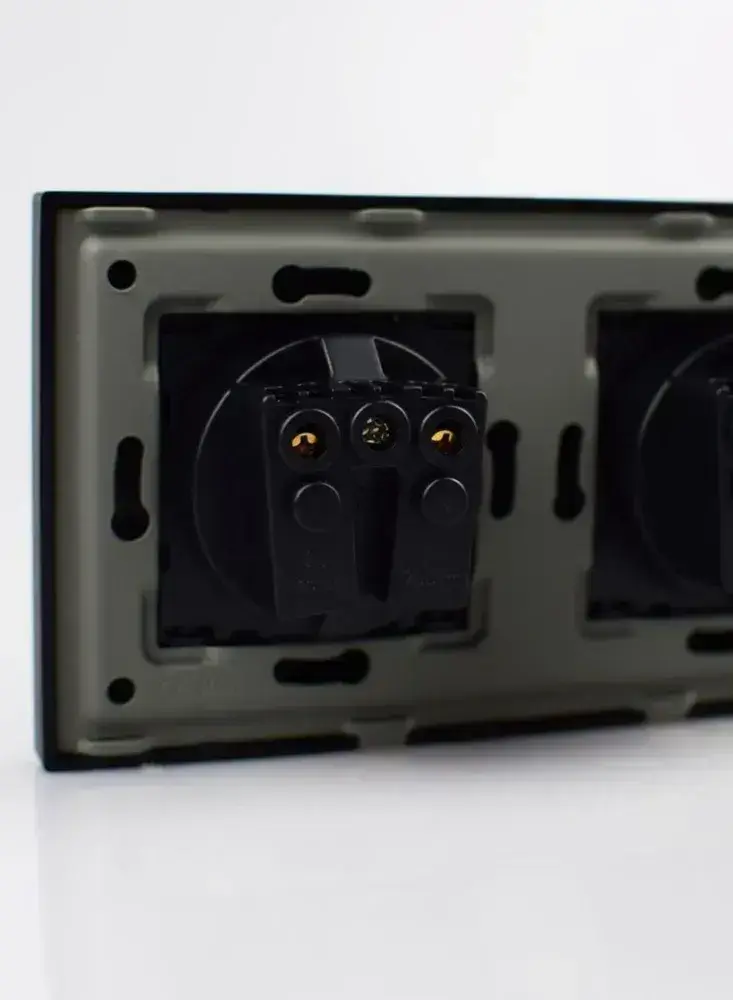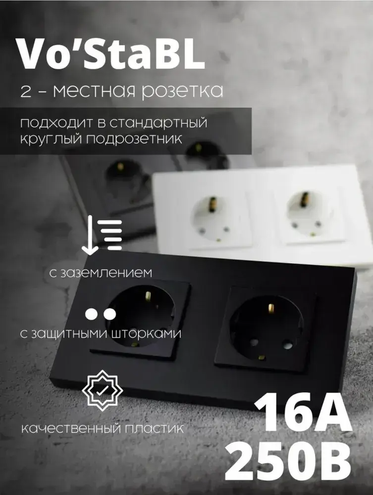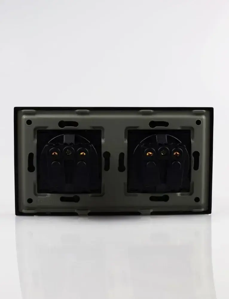 Розетка черная с заземлением, двойная розетка с защитными шторками