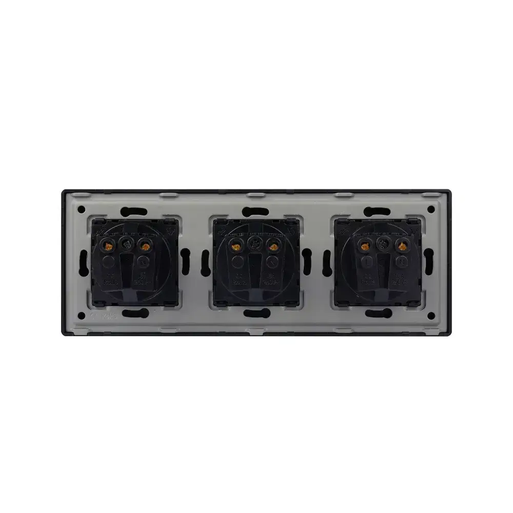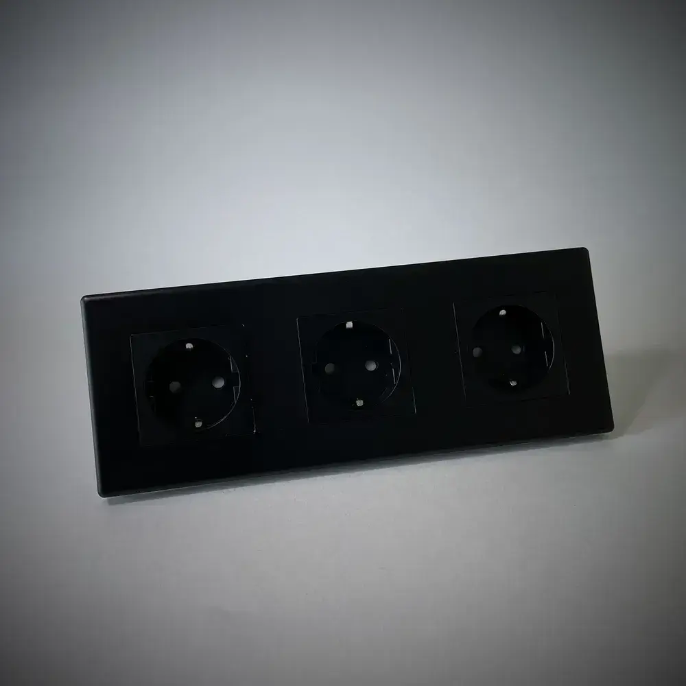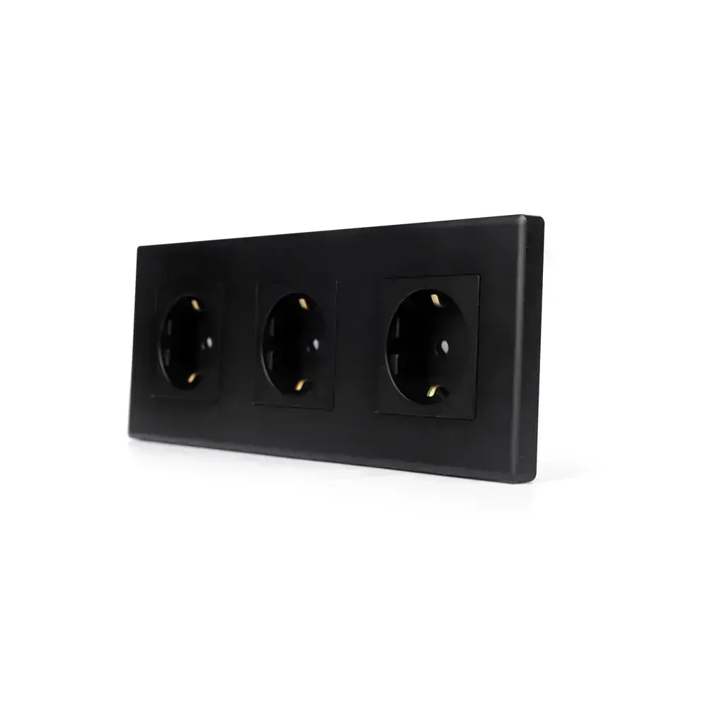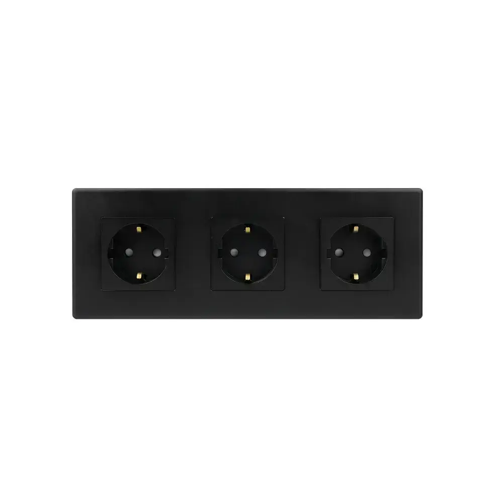 Розетка черная тройная с заземлением матовая поверхность