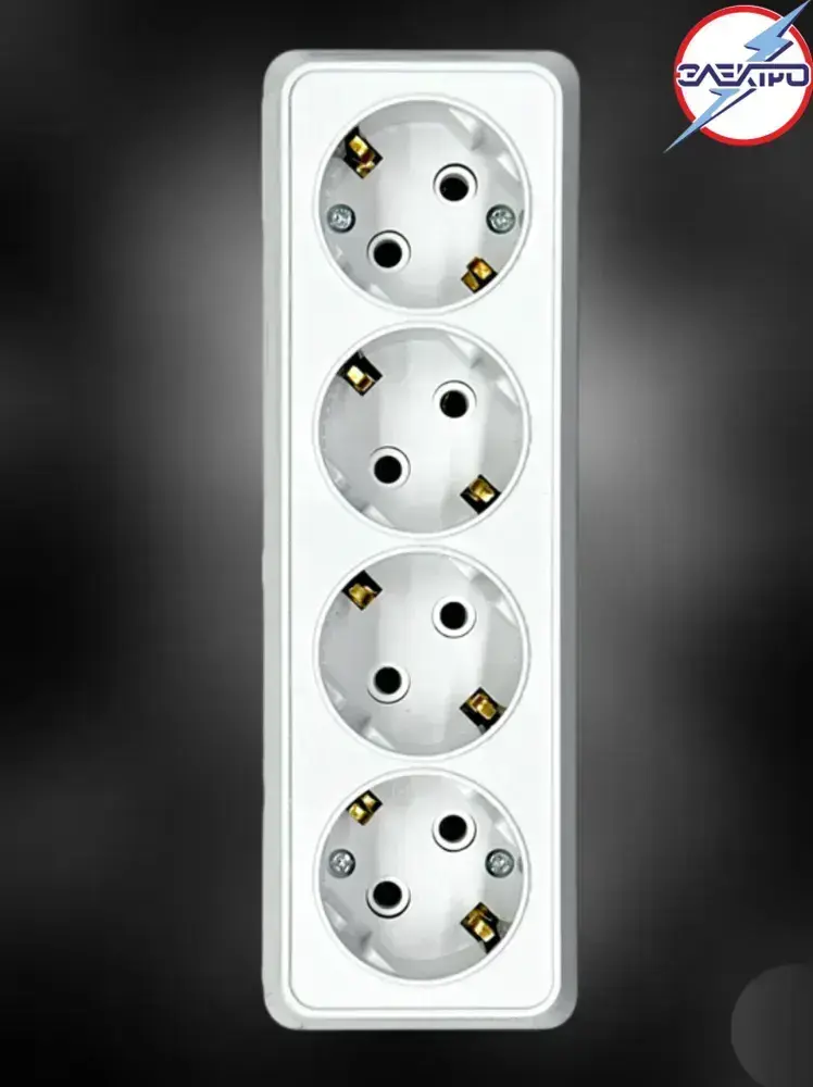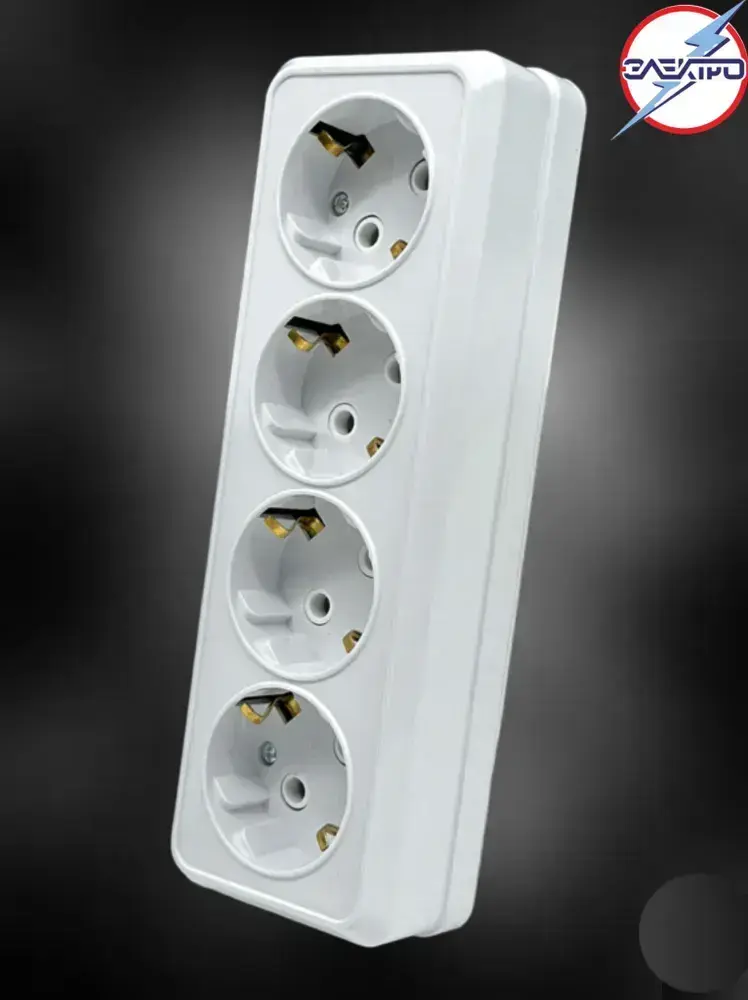 Розетка четверная накладная с заземлением, белый