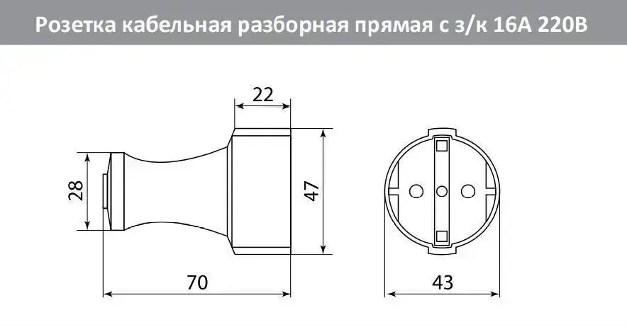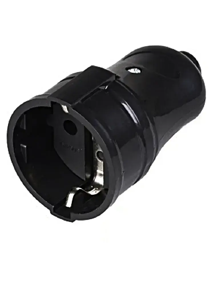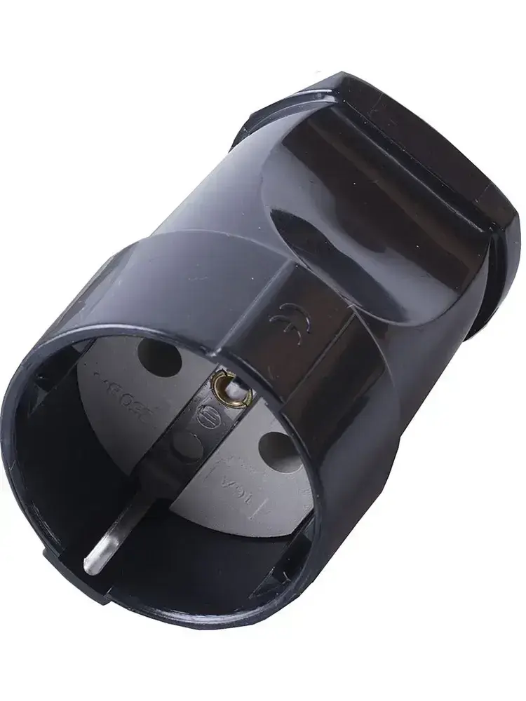Розетка для удлинителя одинарная переносная с заземление 16А 220В чёрная