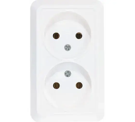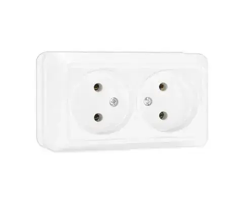 Розетка Двойная открытой установки Белая 2-ая без заземления UNIVersal "Олимп" О0102